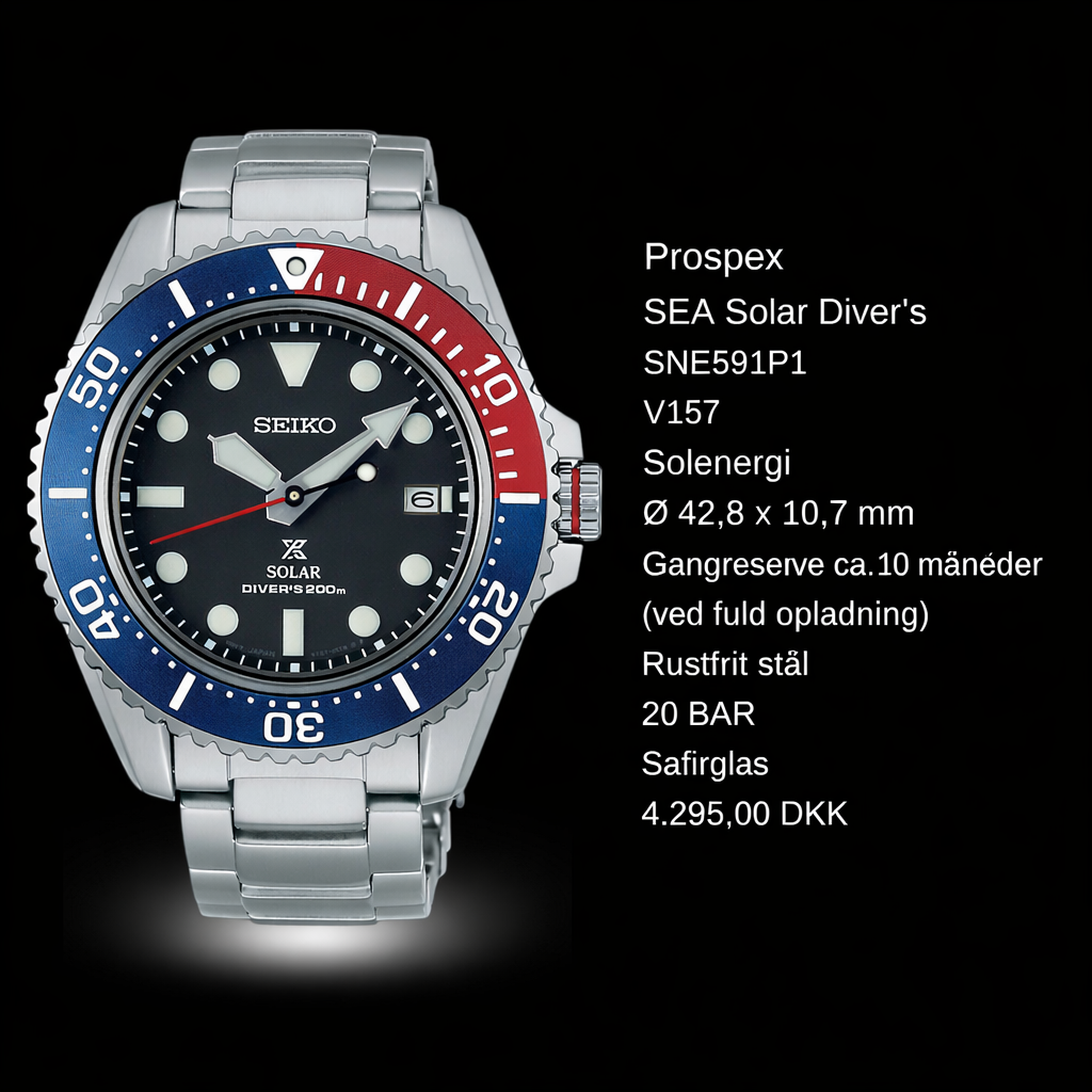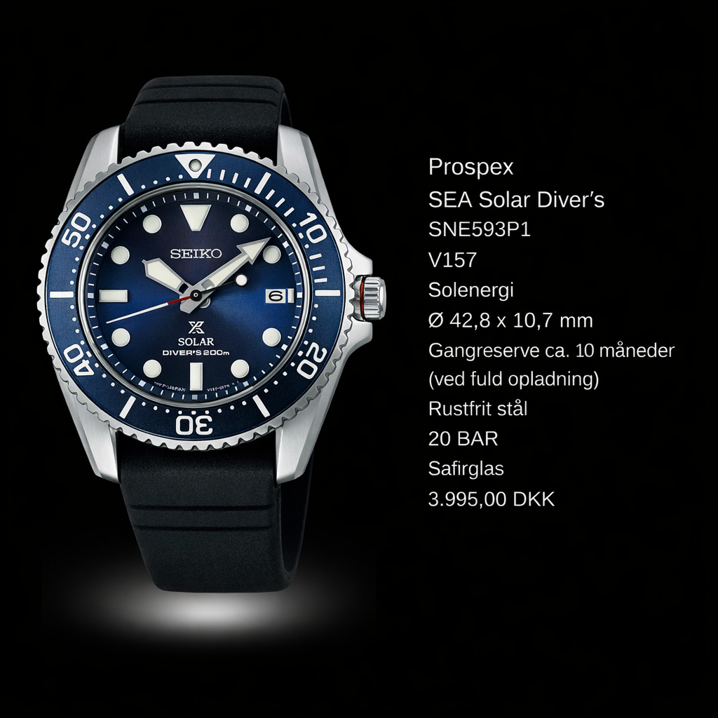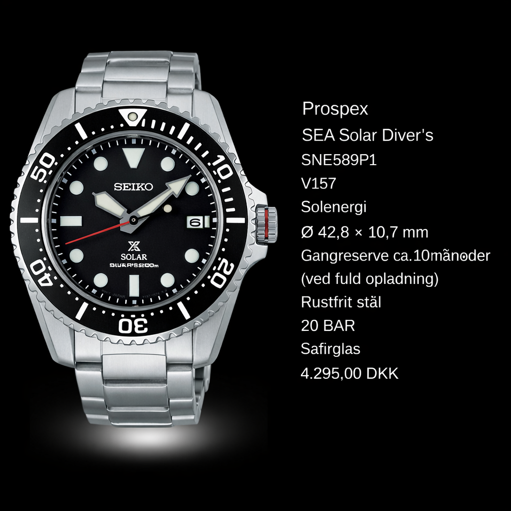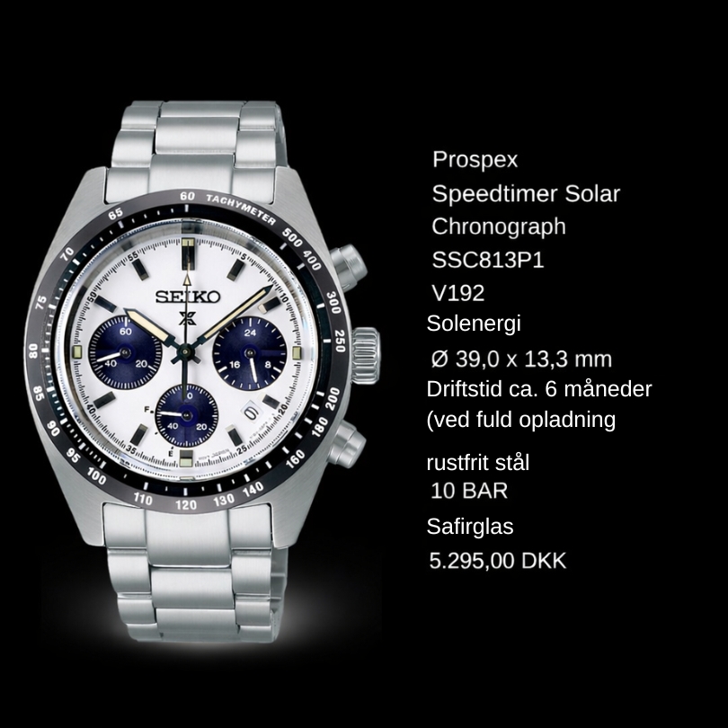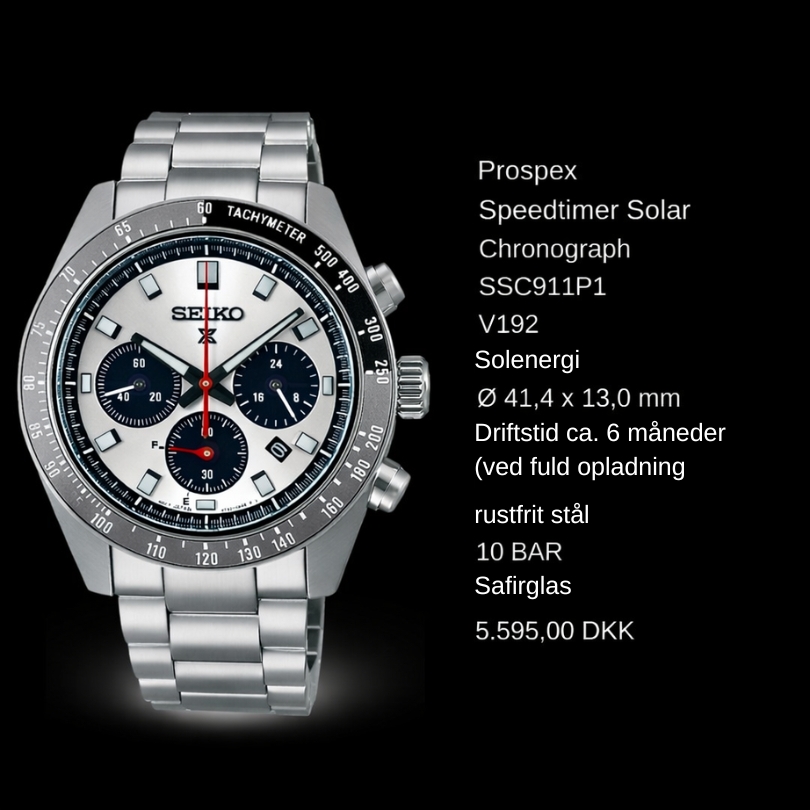Perfekt til deeventyrlystne I 1965 introducerede Seiko sit første 150 meter dykkerur. I mange år har professionelle dykkere valgt Seiko. Årsagen til denne loyalitet? Producenten opfylder, på alle måder, deres krav om robusthed, holdbarhed og præcision. Prospex SEA SNE573P13.995,00 DKK SNE583P14.295,00 DKK SNE585P14.295,00 DKK SNE589P14.295,00 DKK SNE591P14.295,00 DKK SNE593P13.995,00 DKK SPB451J110.995,00 DKK SPB453J110.995,00 DKK SPB455J112.474,66 DKK SRPL11K15.095,00 DKK SRPL13K15.095,00 DKK SRPL15K14.795,00 DKK SPB381J113.295,00 DKK SPB383J113.295,00 DKK Prospex LAND SPB121J16.095,00 DKK SPB155J15.895,00 DKK SPB377J19.395,00 DKK SPB379J19.395,00 DKK Prospex Speedtimer SSC813P15.295,00 DKK SSC817P15.295,00 DKK SSC911P15.595,00 DKK SSC913P15.595,00 DKK SSC917P15.995,00 DKK SSC935P15.595,00 DKK SSC941P15.755,00 DKK SSC943P15.295,00 DKK SSC947P15.595,00 DKK Se alle kollektioner